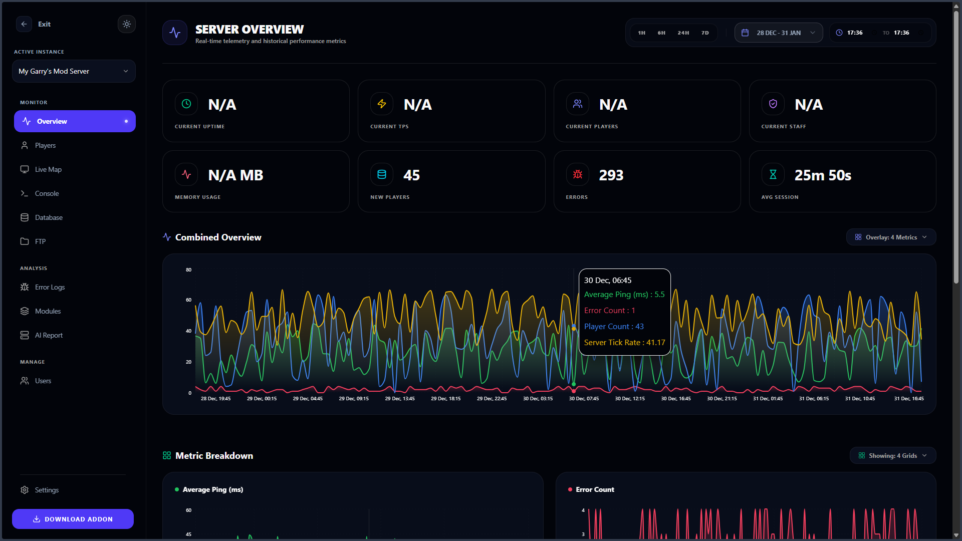 Nexus Maps is the ultimate logging and remote management suite. Monitor server health, debug errors in real time, and visualize your server's economy flow all from a modern web dashboard.